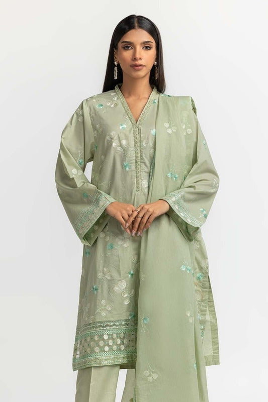 Gul Ahmed 03 Piece Stitched Embroidered Lawn Shirt Printed Lawn Dupatta Dyed Trouser KJP-43185